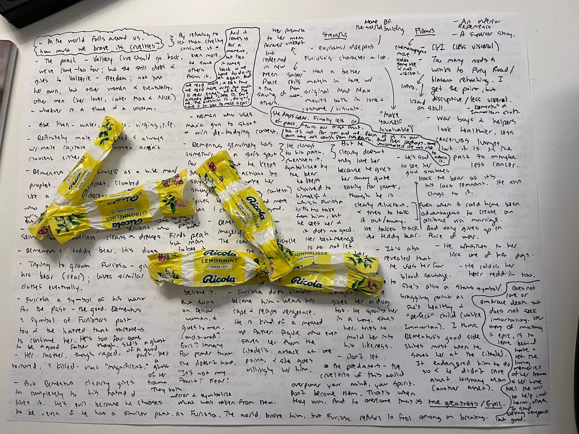 Also, because I know this post might inspire some readers to watch the movie, please know that Furiosa is chock-full of graphic violence and includes instances strongly suggestive of sexual assault and predation as well as child molestation. Though I think the movie deals with these topics in an appropriate manner and not simply for spectacle, you might want to skip on watching Furiosa if these topics are triggering for you.