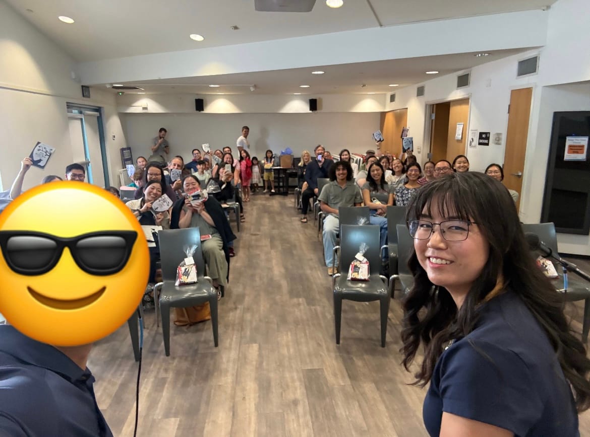 Speaking of Albert, he definitely won #1 Husband of the Year Award with this event. He practiced with me regularly, found and transported all the audio and visual necessities, and ran around taking care of all the random logistical tasks that came up. As we mentioned during the event, he did (and still does) most of the chores around the house to give me time to write, and apart from myself, he’s read and edited my books the most. I wouldn’t have been able to complete Eye in the Blue Box without him, and now, he holds full bragging rights to say that my author event wouldn’t have been possible without him. I didn’t realize it during all the hubbub, but this event unexpectedly turned into a beautiful team-building project that brought a lot of joy to each of us and, in turn, our marriage. I’m grateful for my hubbo.